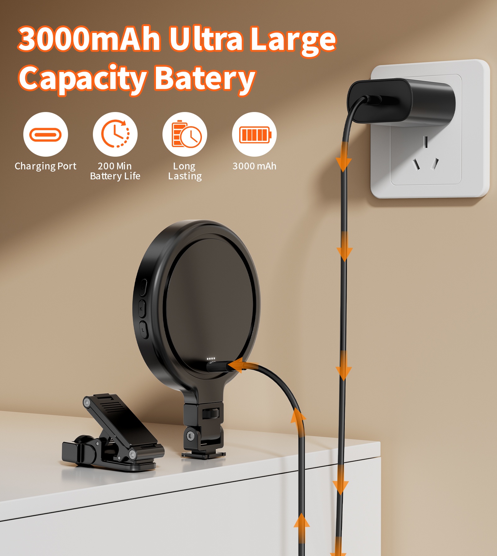 3000mAh Rechargeable Light: Portable camera light is built-in 3000mAh rechargeable battery, LED light bulb via the charging port to charge. Can also charge the fill light via mobile power, wall socket or car charger, very convenient, no need to worry about the light suddenly out of power.