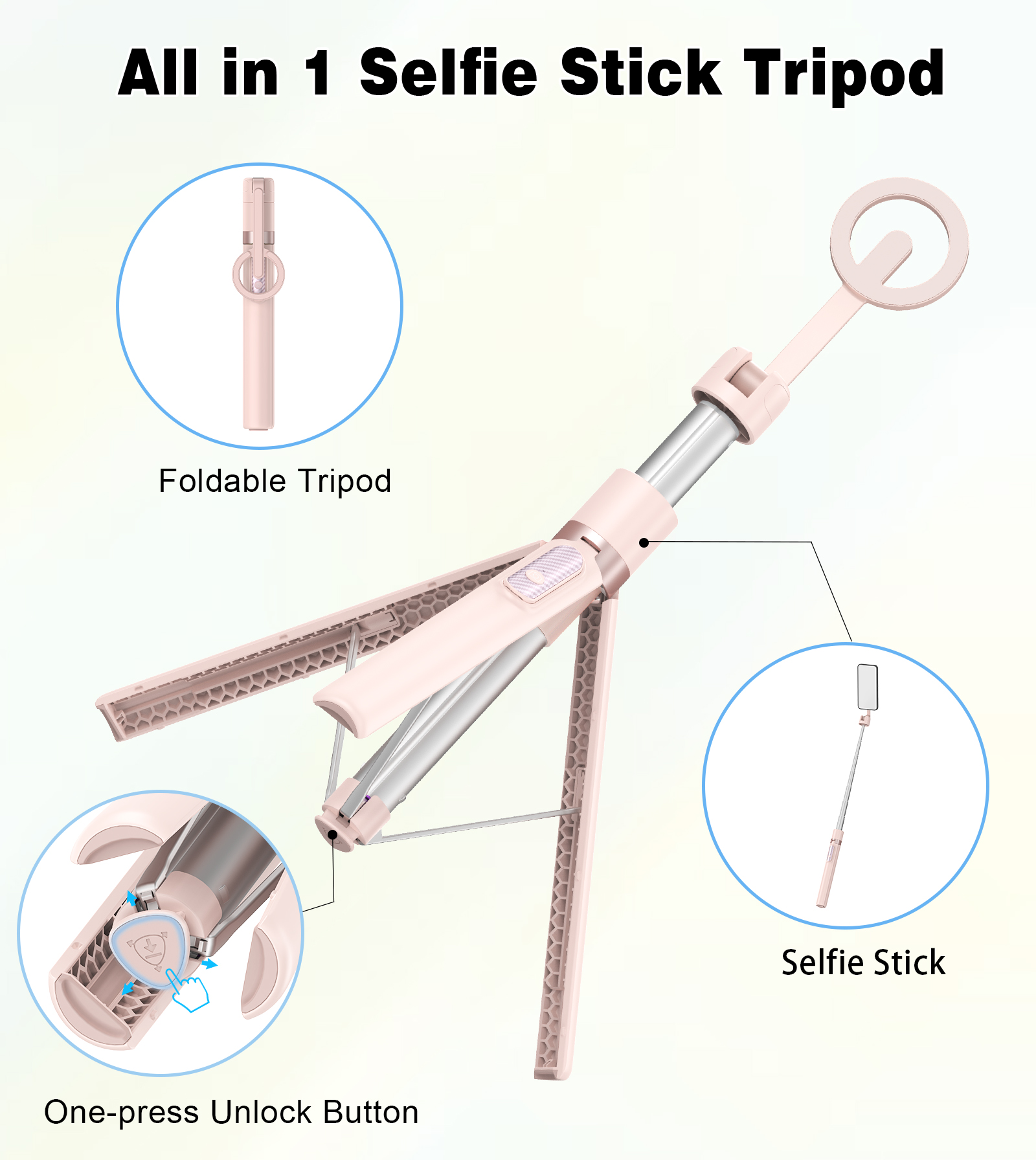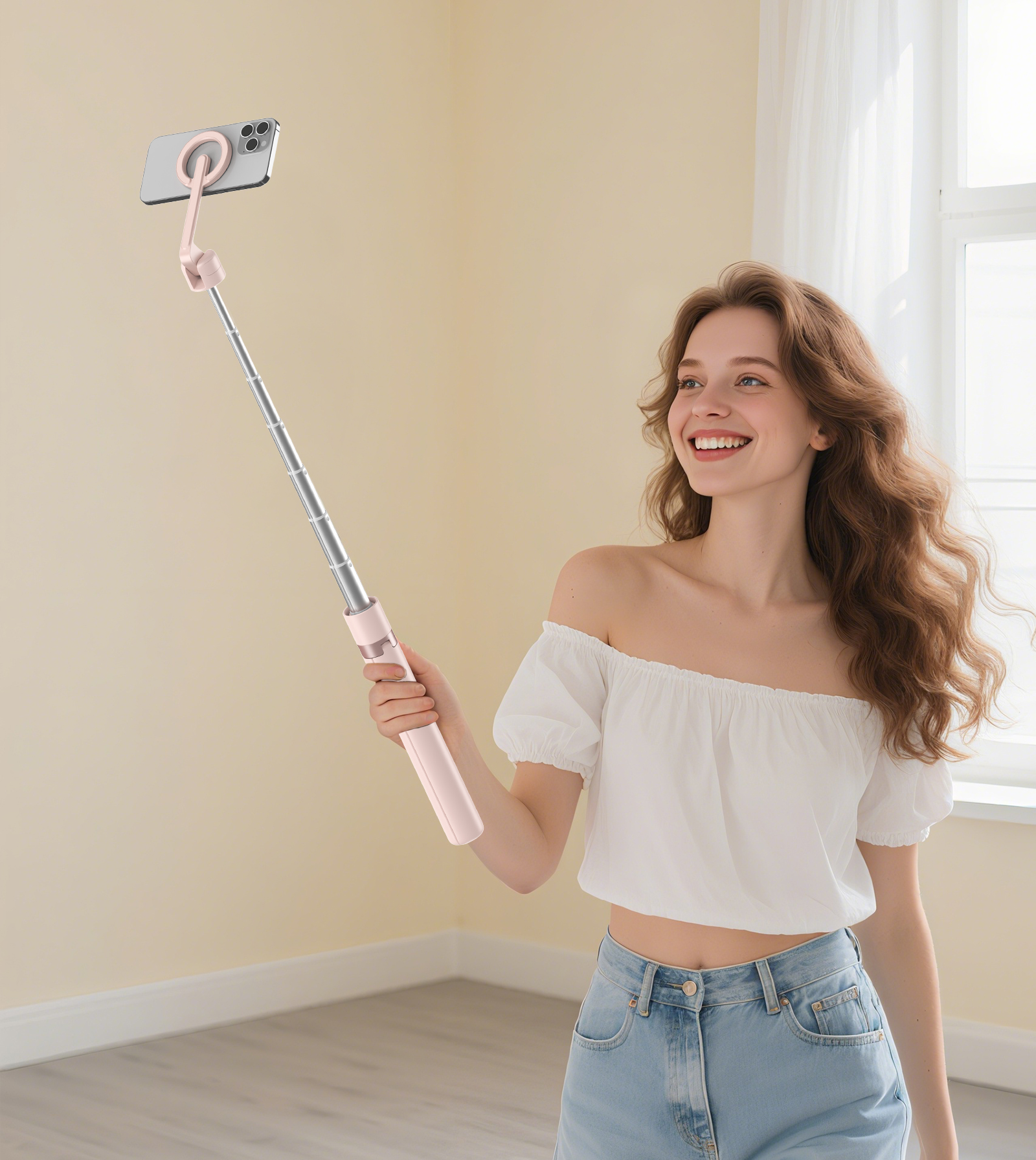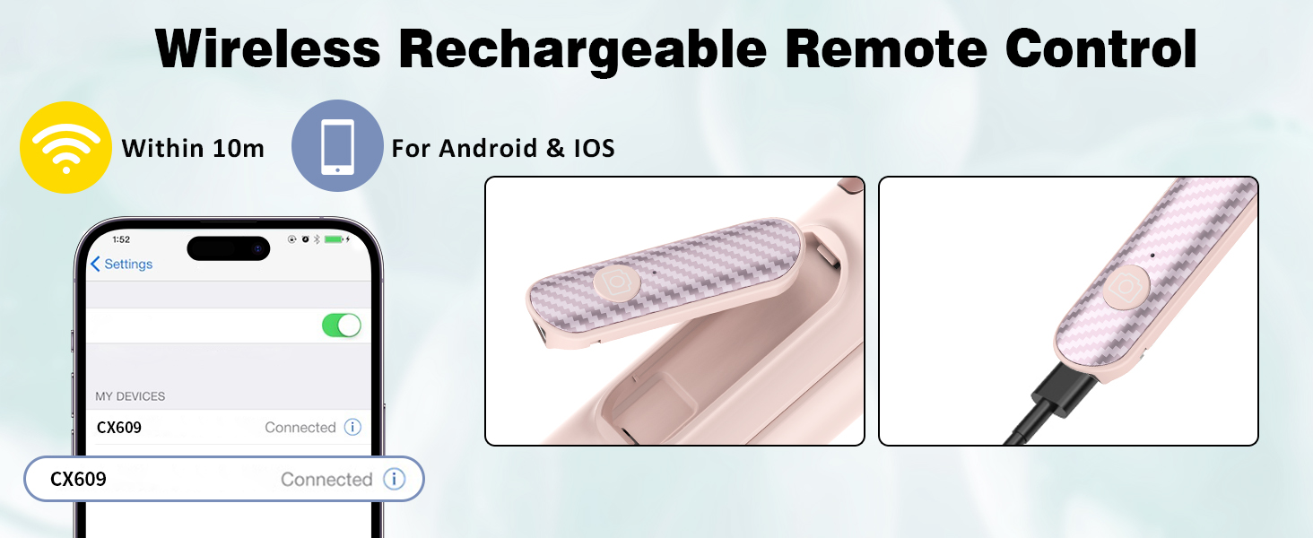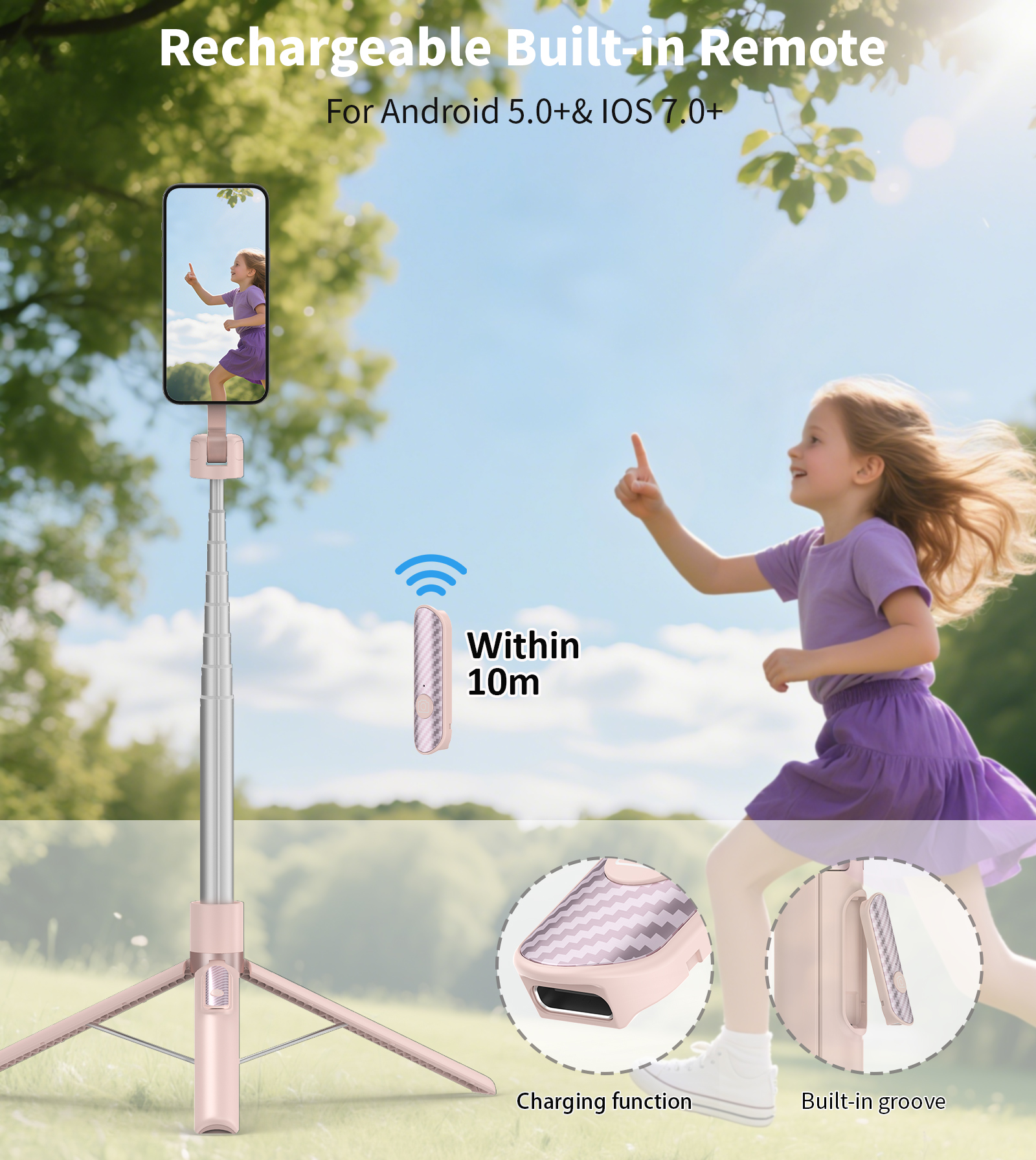 Built-in Rechargeable Remote:The selfie stick for iphone comes with a built-in, detachable wireless remote control that supports charging. This remote allows you to take photos or start/stop video recording from a distance, making it ideal for solo travelers, content creators, or anyone who needs hands-free operation.