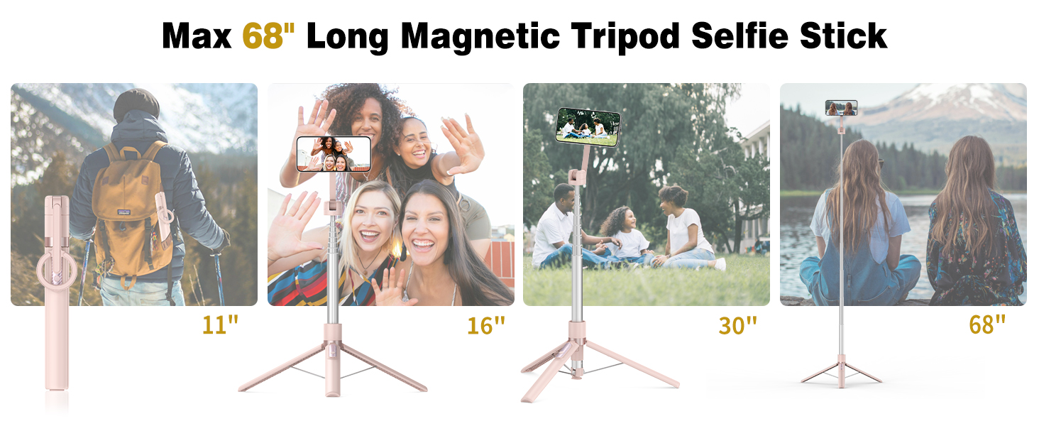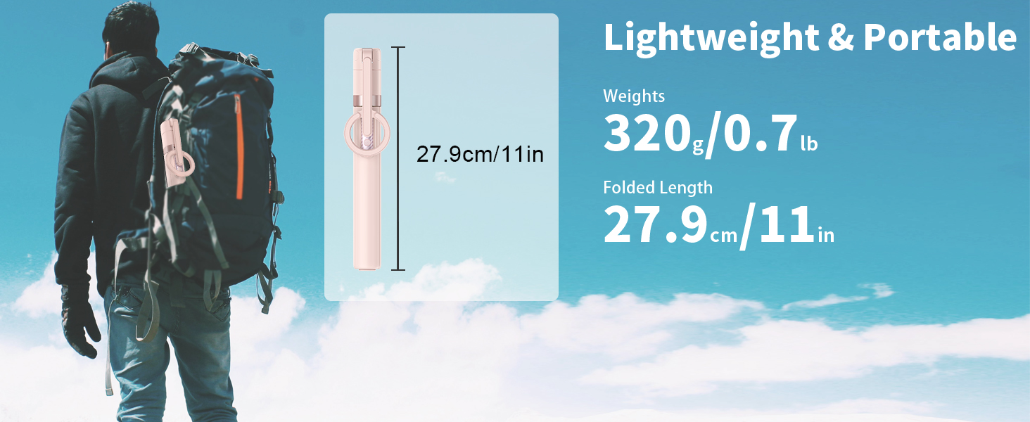 Portable All-in-1 Design:Combining a tripod for cell phone, selfie stick, and magnetic phone holder into one compact device, this item is designed for portability and convenience. This portable tripod weighs only 13 ounces (320 grams) and folds down to just 11 inches, making it easy to carry in your bag or backpack. Whether you're traveling, hiking, or exploring the city.