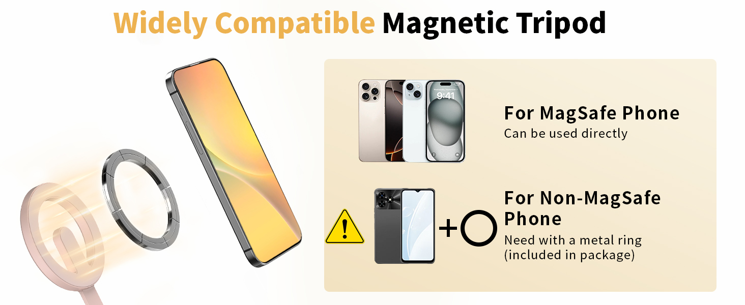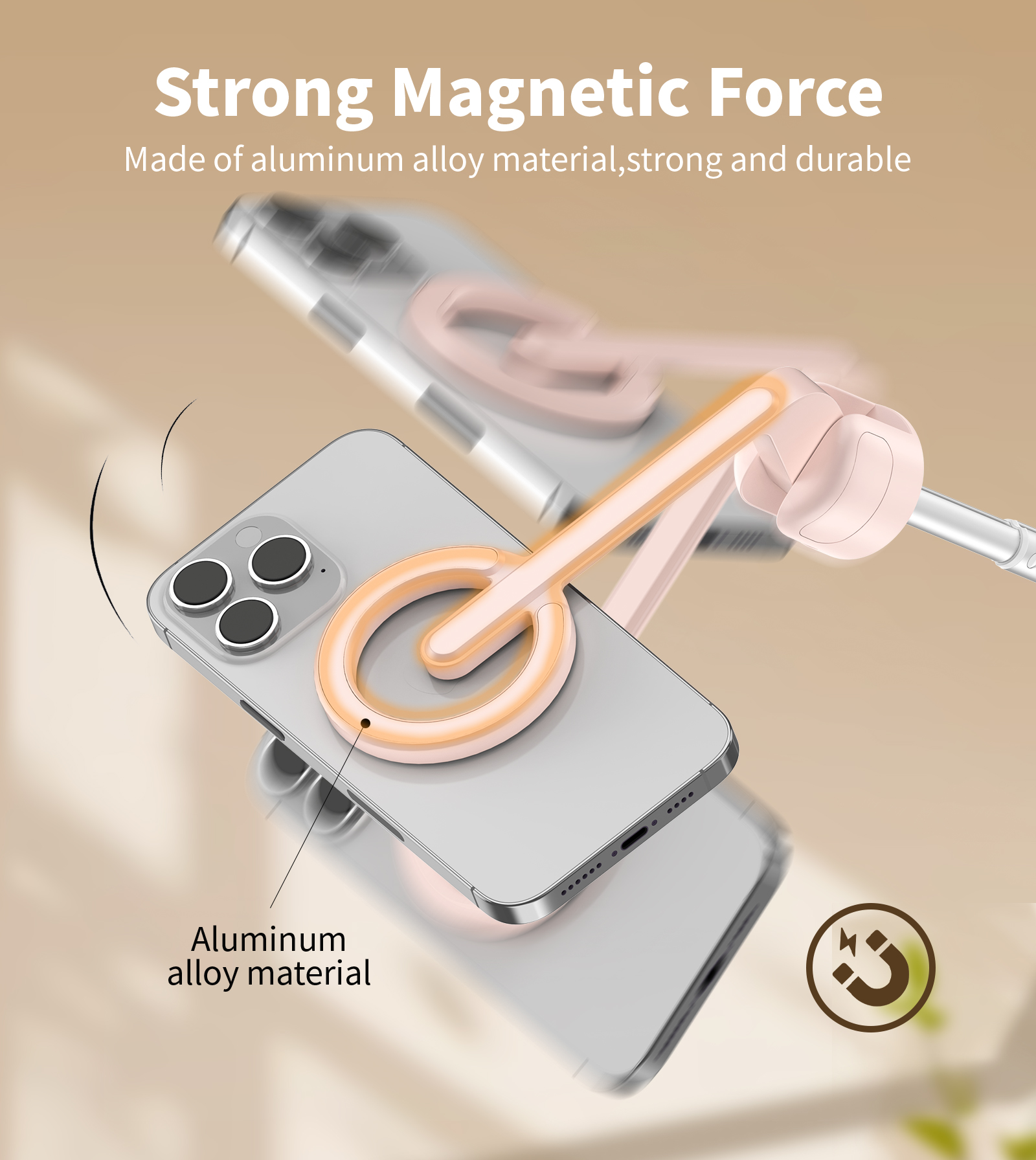 Wide Compatibility & Metal Ring:The cell phone stand for magsafe is compatible with iPhone 12/13/14/15/16 series and more (all phones that support magnetic). For non-magnetic devices, the included metal ring can be attached to your phone, enabling it to work seamlessly with the magnetic mount. This ensures wide compatibility with a variety of smartphones, making it a versatile tool for all users.