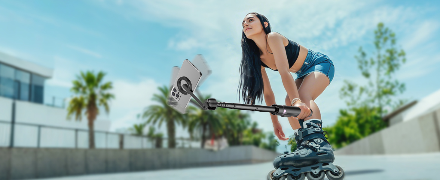 Adjustable 360° Free Rotation:The magnetic phone mount allows for 360° horizontal rotation and 200° vertical tilt adjustment, giving you complete control over your phone's positioning. This flexibility ensures you can capture photos and videos from different angle, whether you're shooting landscapes, portraits, or dynamic action shots.