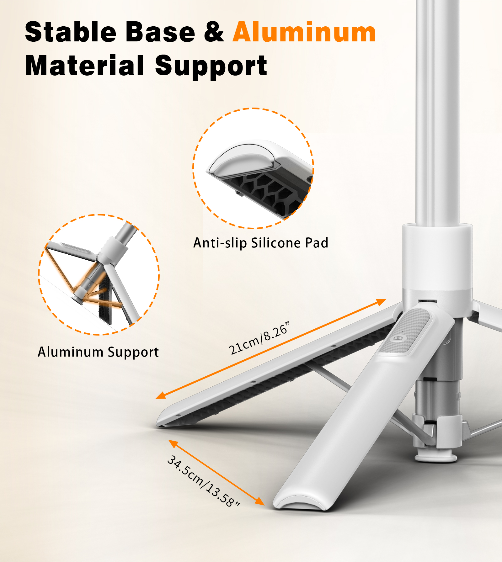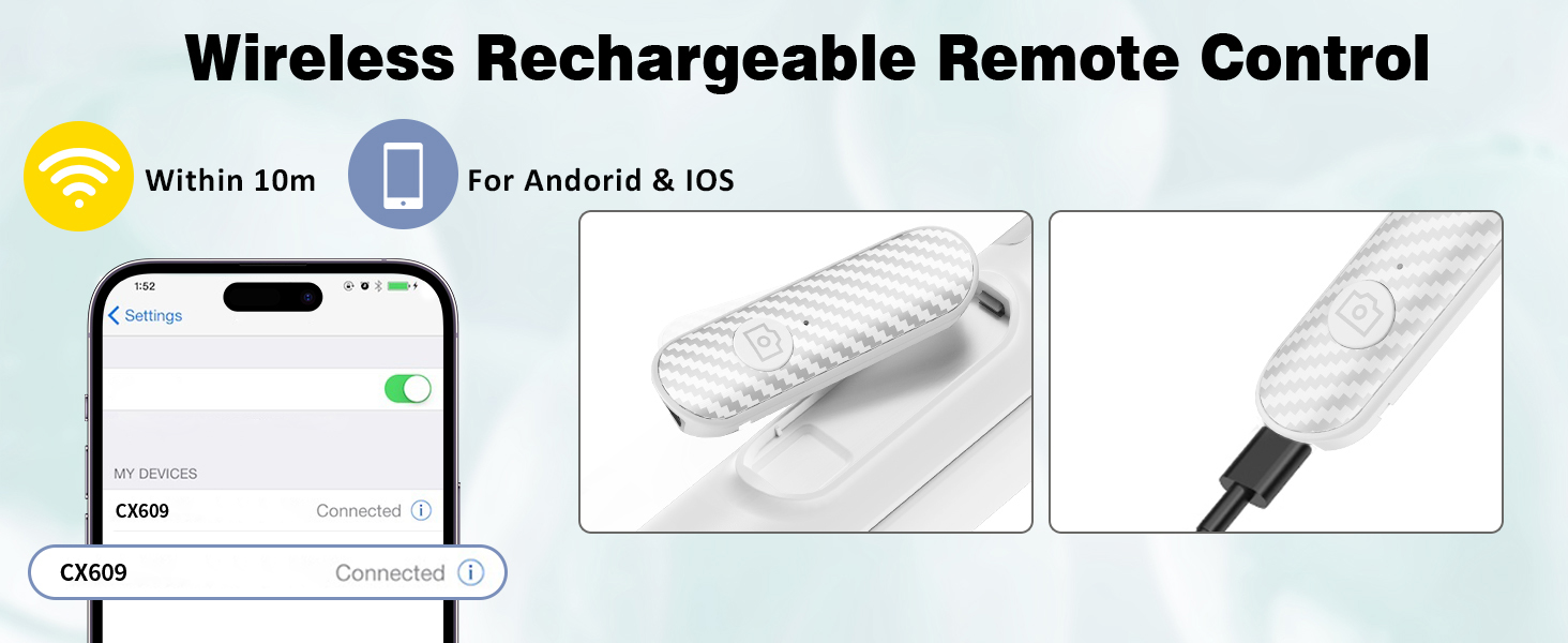 Built-in Rechargeable Remote:The selfie stick for iphone comes with a built-in, detachable wireless remote control that supports charging. This remote allows you to take photos or start/stop video recording from a distance, making it ideal for solo travelers, content creators, or anyone who needs hands-free operation.