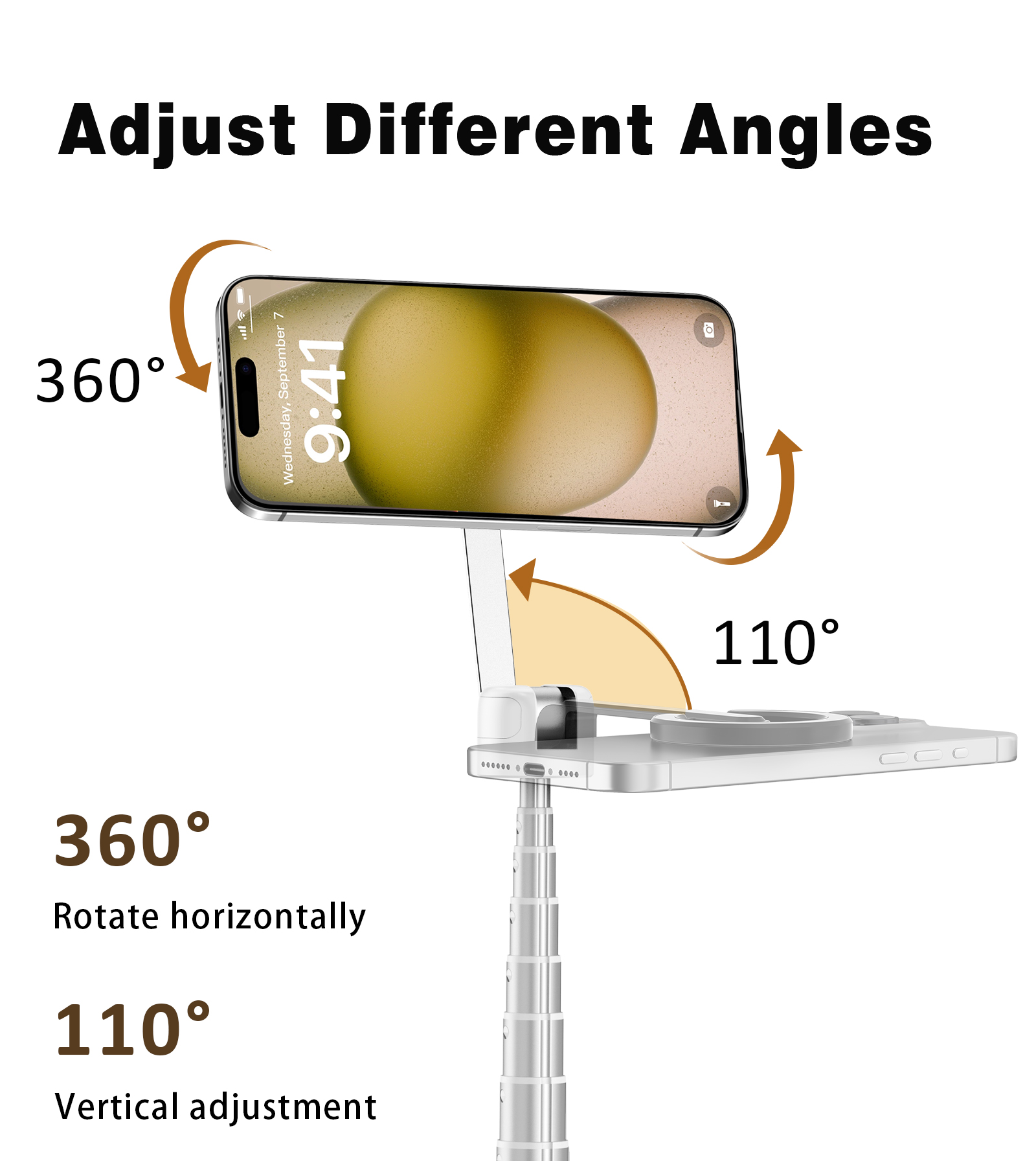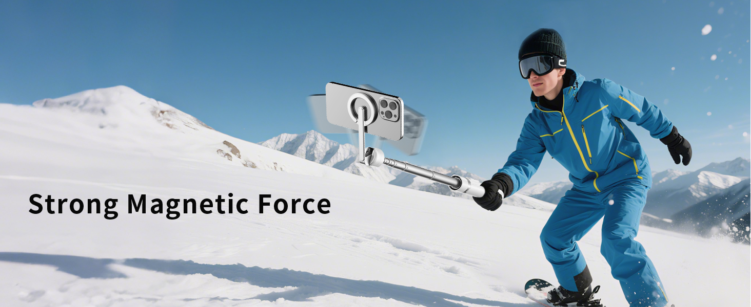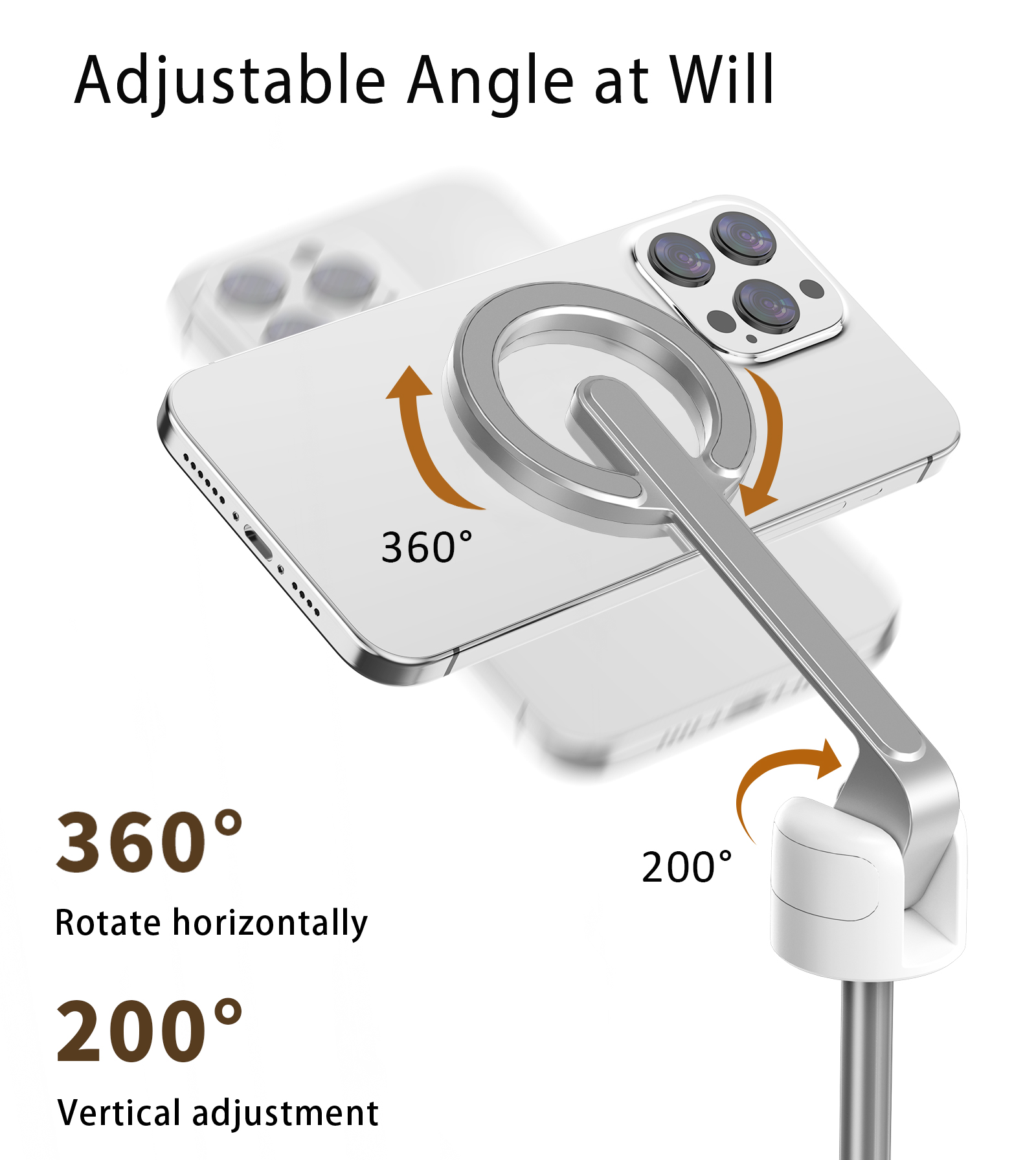 Adjustable 360° Free Rotation:The magnetic phone mount allows for 360° horizontal rotation and 200° vertical tilt adjustment, giving you complete control over your phone's positioning. This flexibility ensures you can capture photos and videos from different angle, whether you're shooting landscapes, portraits, or dynamic action shots.
