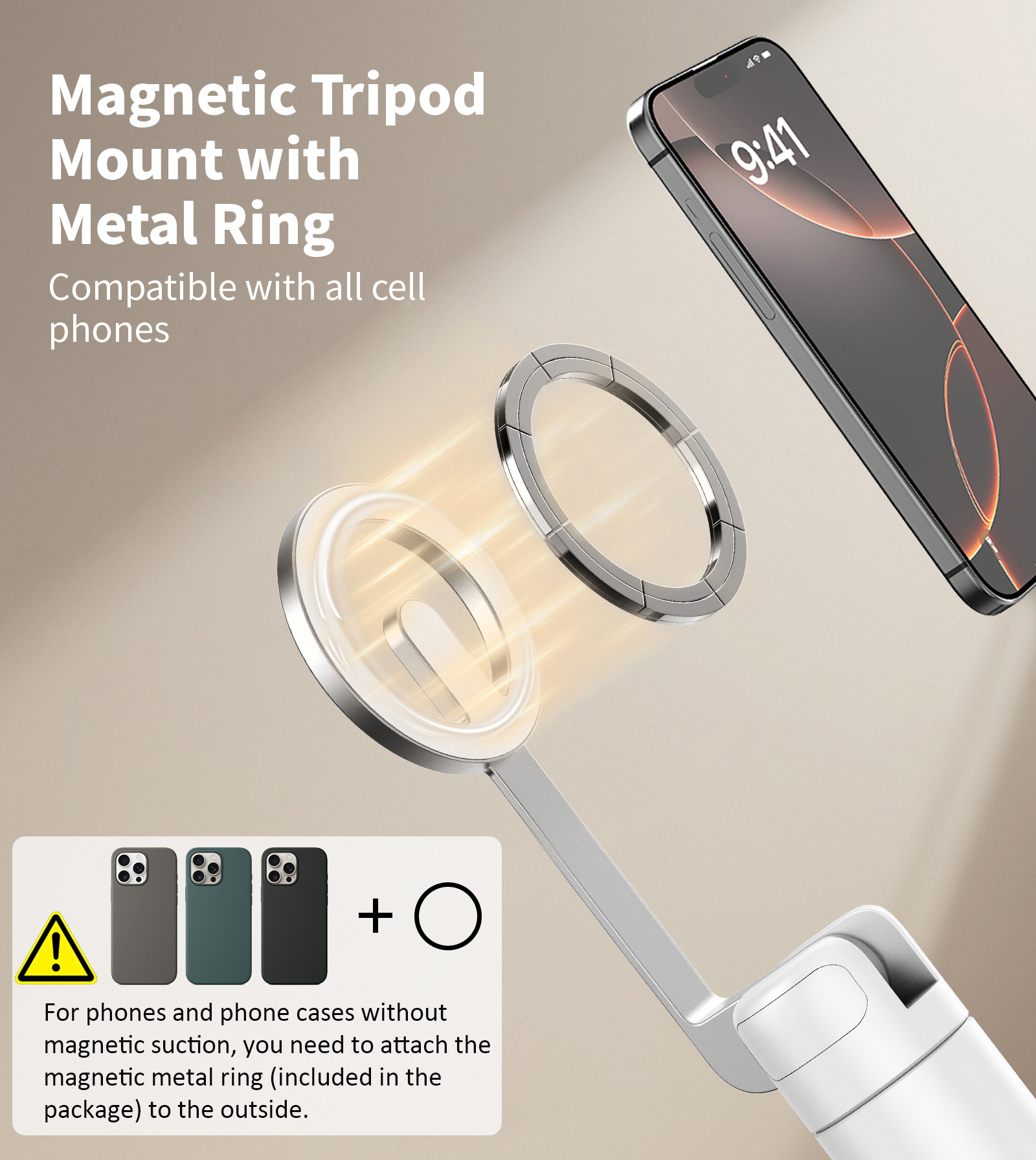 Portable All-in-1 Design:Combining a tripod for cell phone, selfie stick, and magnetic phone holder into one compact device, this item is designed for portability and convenience. This portable tripod weighs only 13 ounces (320 grams) and folds down to just 11 inches, making it easy to carry in your bag or backpack. Whether you're traveling, hiking, or exploring the city.